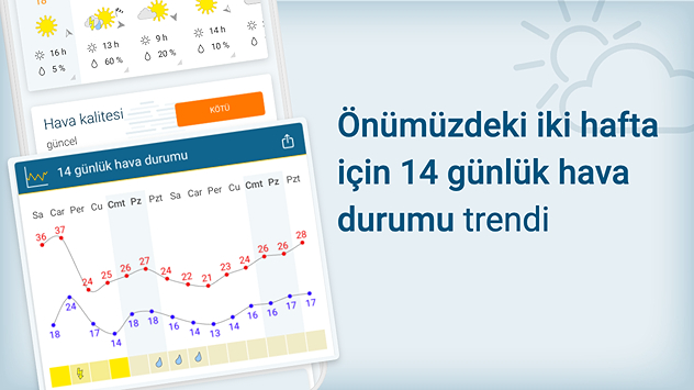 Hava Durumu ve Radar'ın ücretsiz hepsi bir arada hava durumu uygulamasıyla hava durumu hakkında her zaman iyi bilgi sahibi olun: Anlaşılır ve güvenilir bir hava tahmininden çok daha fazlasını sunan kapsamlı işlevler hakkında her şeyi öğrenin.