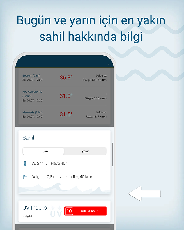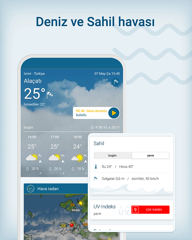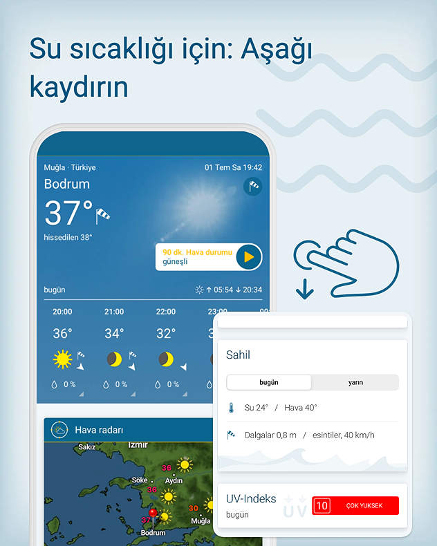Yani ister deniz tatili planla, ister günübirlik yüzme keyfi yap – Hava durumu & radar uygulamasıyla deniz sezonuna her zaman hazırsın!